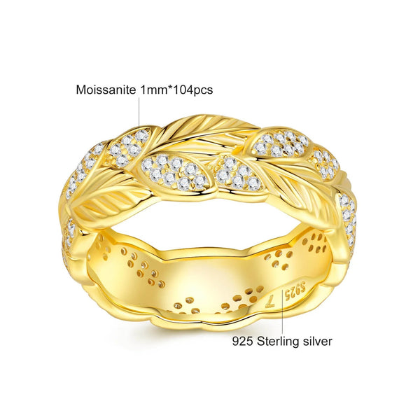 More than a ring, it's a promise of abundance. Crafted in 925 sterling silver, this band is paved with moissanite along a golden wheat motif, celebrating life's richest harvests.
