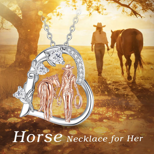 Horse & Girl Heart Pendant Necklace