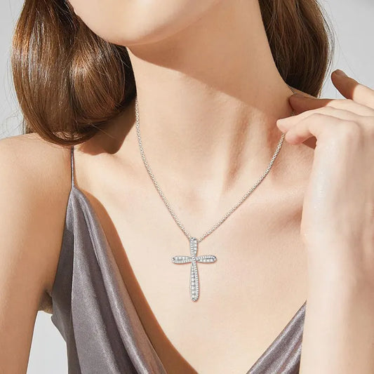Classic 1.2ct D-Color Moissanite Cross Necklace