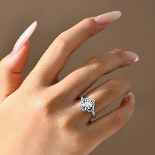 Four-Petal Floral Halo Moissanite Ring (1.5ct)