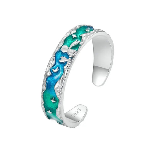 Silberring mit Kleeblatt-Rebe in Mintgrün