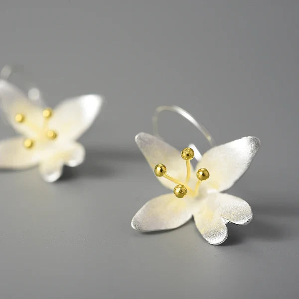 Diese großen Blumenohrringe verleihen Ihrem Outfit eine einzigartige Note und machen Sie zum Mittelpunkt der Aufmerksamkeit. Sie sind aus Sterlingsilber gefertigt und verleihen Eleganz und Charme, sodass Sie einen bleibenden Eindruck hinterlassen.