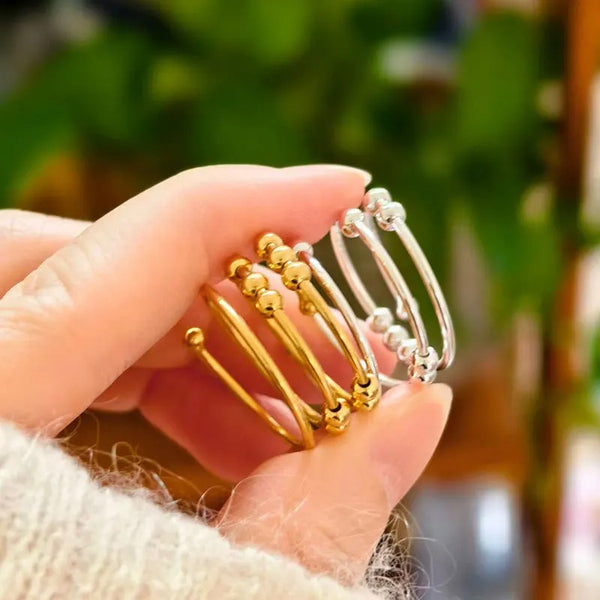 Calm at your fingertips. A stylish multi-layer ring with rotating silver beads designed to reduce stress and improve focus. Crafted in Solid S925 Sterling Silver.