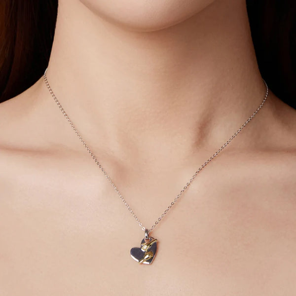 Der herzförmige Anhänger dieser Halskette, sanft umschlossen von zweifarbigem Silber, symbolisiert eine liebevolle Umarmung. Fühlen Sie sich Ihren Lieben nah, auch wenn sie meilenweit voneinander entfernt sind. Verschönern Sie Ihre Alltagskleidung mit einem Hauch emotionaler Wärme.