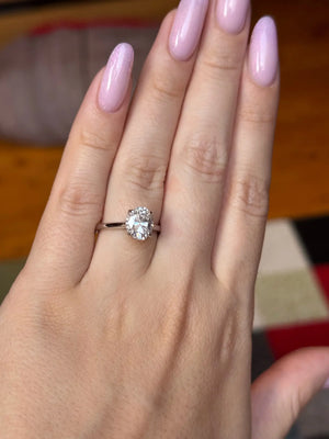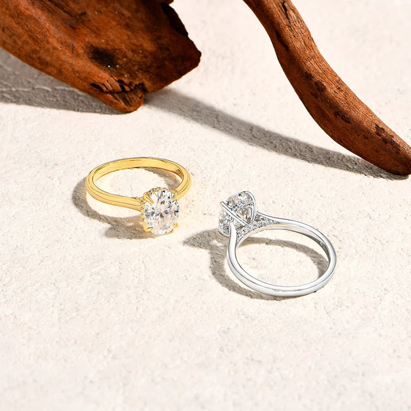 A naturally flattering silhouette. A breathtaking 2.0ct oval moissanite elevated by a delicate pavé band. Crafted in solid S925 silver for everyday, enduring elegance.