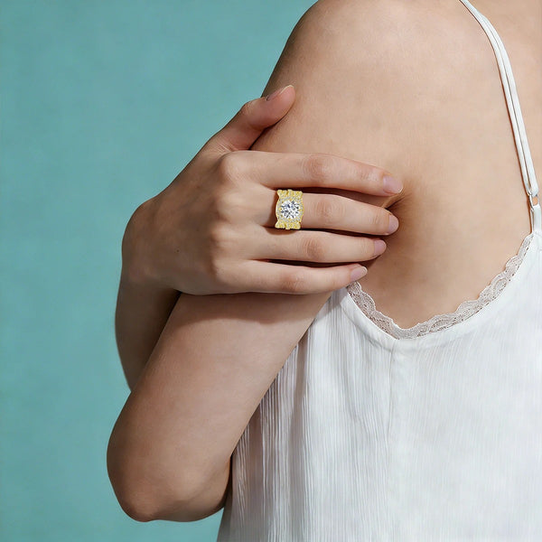 Why fumble with stacking multiple rings when you can have the perfect lock? This 2-Piece Bridal Set features a clever Enhancer design. The centerpiece is a classic 3.0ct Solitaire Ring. The second piece is a Double-Row Guard connected at the bottom, creating a secure slot for the solitaire to slide into. Weighing a massive 14.7 grams in Solid S925 Silver, it transforms a simple engagement ring into a regal, wide-band statement instantly. It feels secure, heavy, and undeniably expensive.