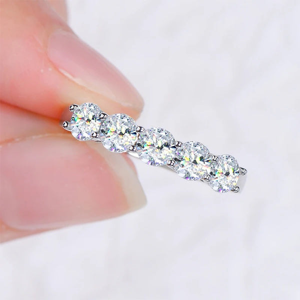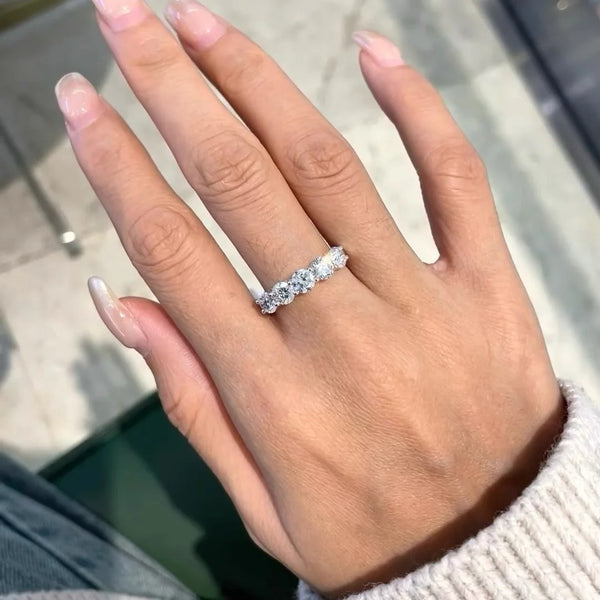 Bague demi-alliance 5 pierres en moissanite