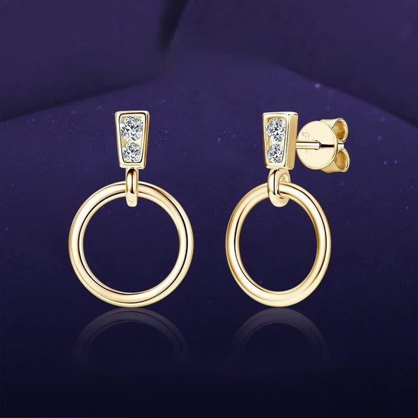 Minimalist geometry. A sleek gold circle suspended from a sparkling moissanite bar. Modern, lightweight, and crafted in solid S925 Silver.