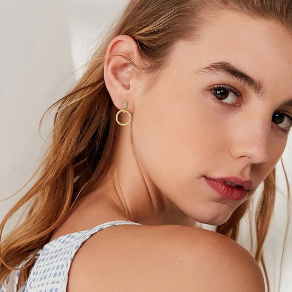 Basic studs can be boring, but huge hoops are often heavy and impractical. These geometric drops hit the sweet spot: edgy enough to stand out, yet lightweight (approx. 2g) for all-day comfort. 💎 The Vibe: The polished gold circle catches the light as you move, adding instant polish to a blazer or a simple tee.