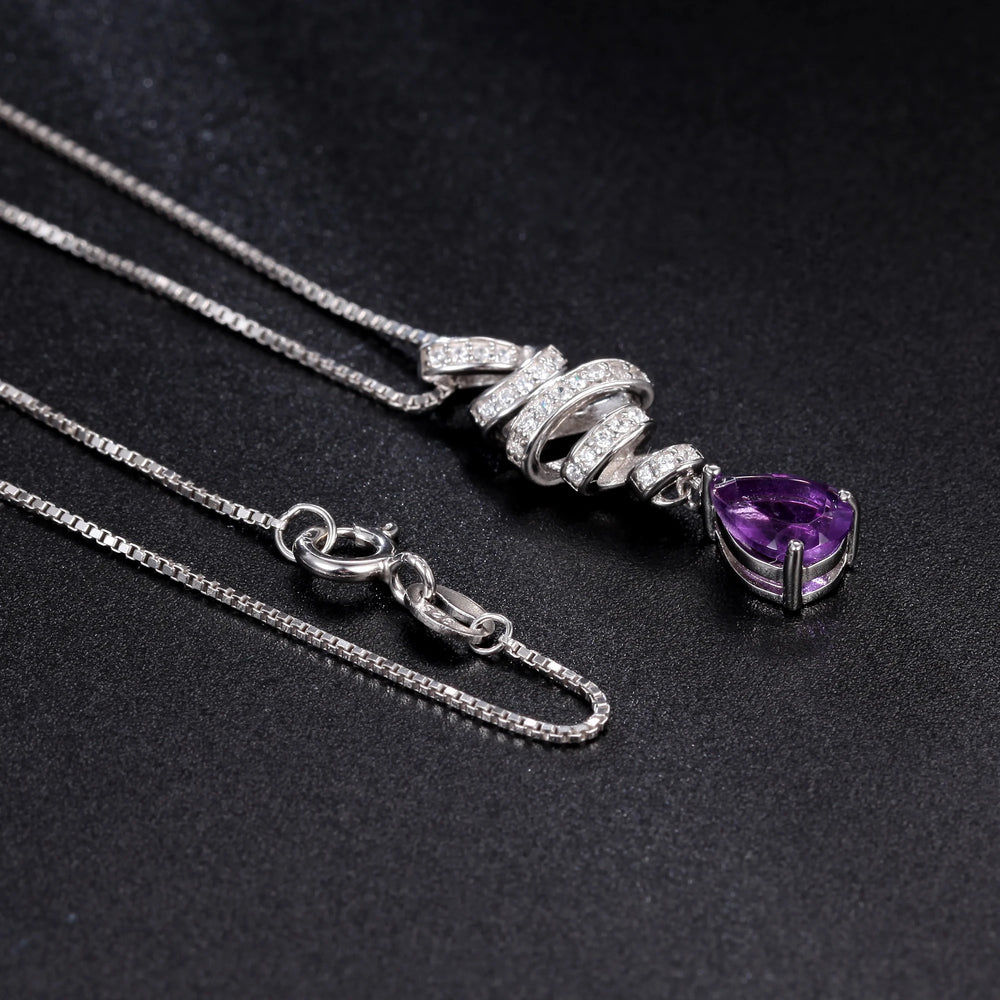 Yes, the necklace features a genuine pear-shaped natural amethyst, ensuring authenticity and timeless beauty.