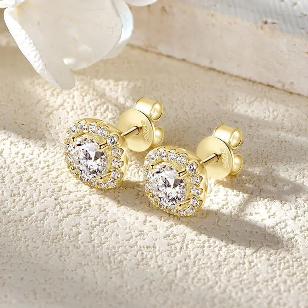 Simple solitaires can sometimes look small on the ear. This Halo design surrounds the 5mm center stone with a border of light, creating the optical illusion of a much larger, 2-carat sized gem. 💎 The Look: Get the presence of a massive diamond stud without the massive weight or price tag.