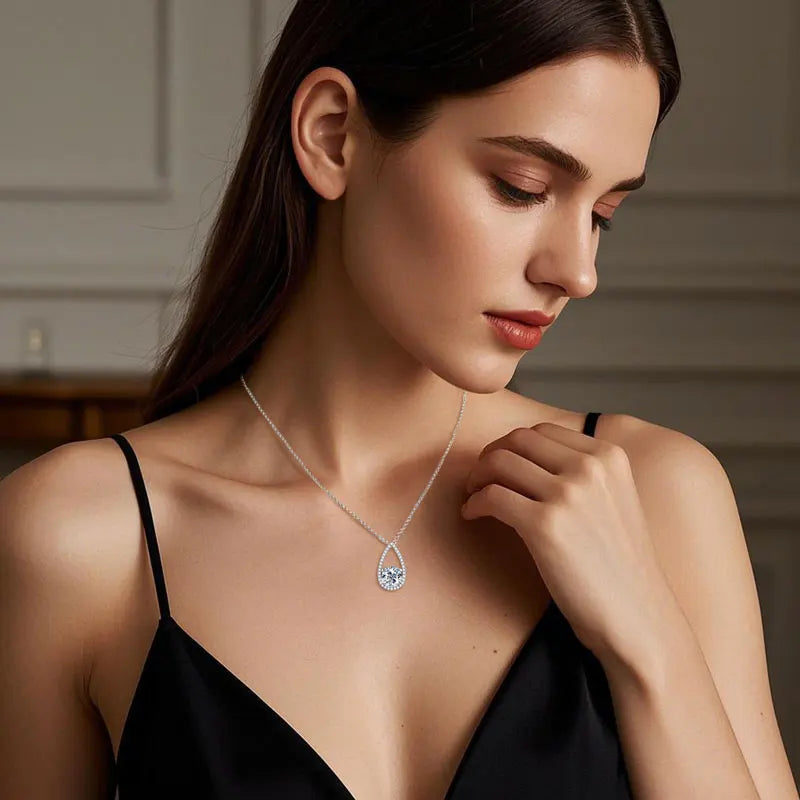 The Elegant Moissanite Teardrop Necklace is a breathtaking piece that will leave her speechless. Its dazzling sparkle and timeless design make it a cherished gift for any occasion, transforming moments into cherished memories.
