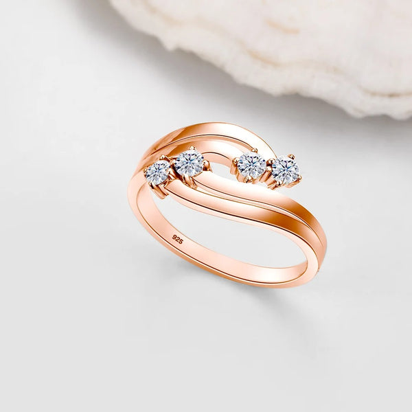 Why settle for ordinary? The Fluid Eternity Band features intertwining waves that represent an unbroken bond. Set with sparkling moissanite on S925 Sterling Silver (available in Silver, Gold, or Rose Gold), it creates a rhythmic dance of light on your finger—elegant, meaningful, and uniquely yours.