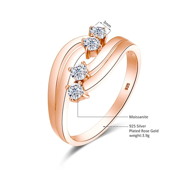 Crafted from 925 sterling silver, this moissanite eternity band features fluid, intertwining designs that symbolize an unbroken bond, available in silver, gold, and rose gold finishes.