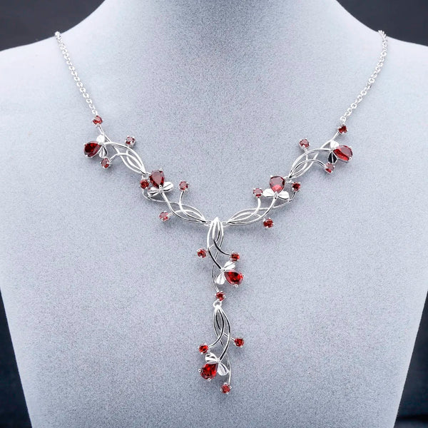 Add a timeless sparkle to your special day with this stunning red garnet necklace for women.
