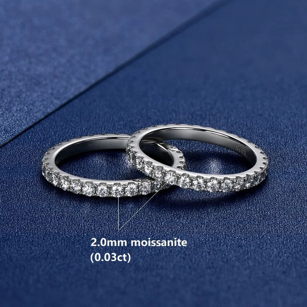Discover the elegance of moissanite, a gemstone that sparkles like a diamond but at a fraction of the cost. This eternity band offers a dazzling display that captures the essence of your unique love story.