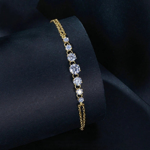 Graduated 7-Stone Moissanite Double Chain Bracelet