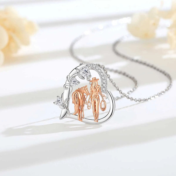 Horse & Girl Heart Pendant Necklace