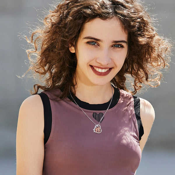 For horse lovers, riding isn't just a sport; it's a bond. Generic horse jewelry often looks childish. This pendant features a realistic silhouette of a girl and her horse, plated in warm Rose Gold against cool Silver. 💎 The Detail: Three sparkling stones accent the heart, symbolizing the shining moments spent together at the barn.