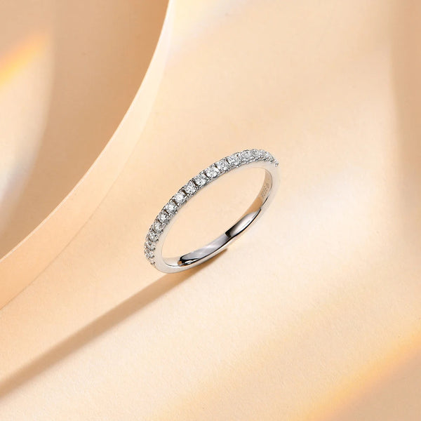 Don't let ordinary rings dim your special day. Our Moissanite Wedding Band offers a dazzling shine that captures attention, making every glance a moment to remember. Transform your wedding into a sparkling event!