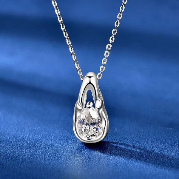 Standard prong pendants can feel sharp and look generic. This sculptural design features smooth, flowing curves that protect the stone and glide over fabric. 💎 The Upgrade: It turns a classic pear shape into a modern statement piece, offering the brilliance of a 1.5ct diamond with a unique artistic flair.