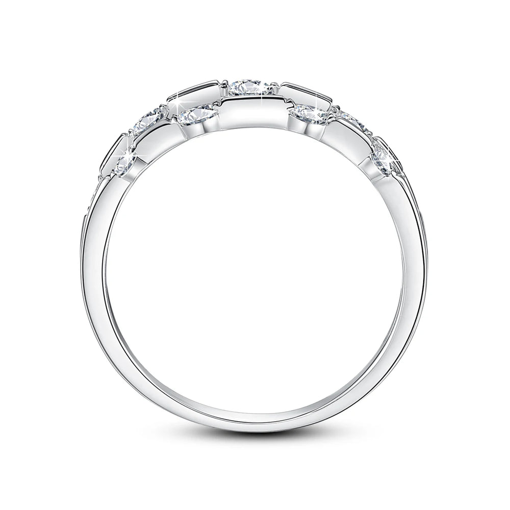 Our Moissanite band provides the brilliance of diamonds, ensuring you shine with confidence daily. Revel in timeless elegance that elevates every moment, without the diamond cost.