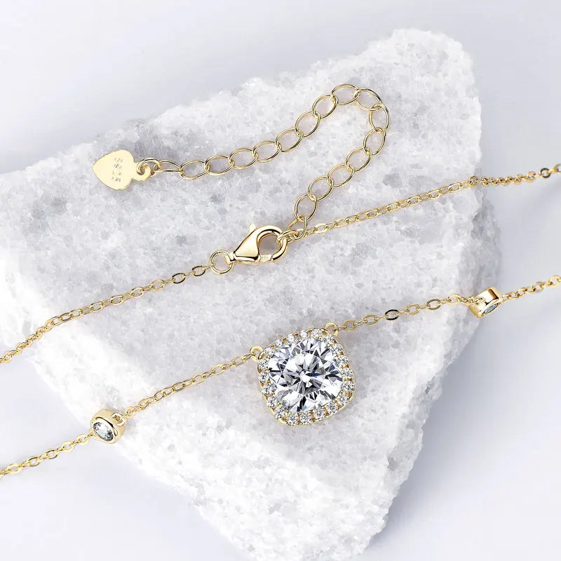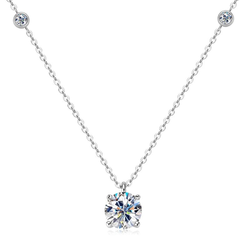 Our necklace's brilliant moissanite stone and sterling silver design guarantee unmatched shine and versatility. Perfect for enhancing daily outfits or special events, it boosts your confidence and elegance effortlessly.