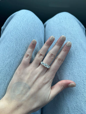 Absolutely! Crafted from sterling silver, it resists tarnishing. The moissanite stones are known for their hardness, ensuring the ring remains beautiful for years.