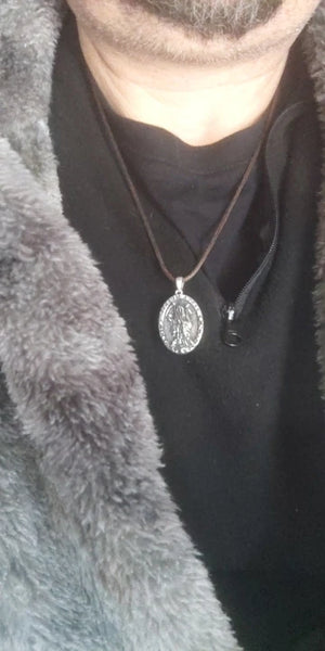 This Santa Muerte necklace offers spiritual protection and a stylish statement piece, resonating with personal beliefs and enhancing confidence.
