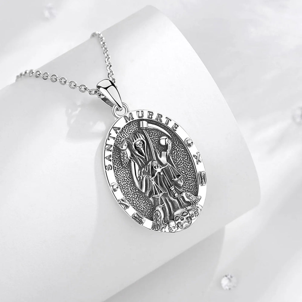 Surprise your loved one with this distinctive Santa Muerte necklace. Its symbolic design and sterling silver finish make it a thoughtful gift that resonates with personal meaning and style.
