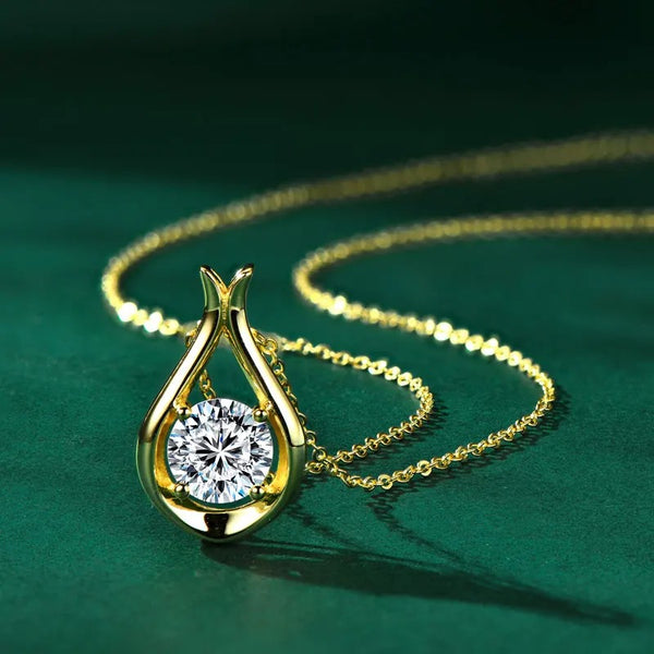 Why wear a stiff setting when you can wear art? This pendant features a continuous metal curve that cradles the stone like a drop of water. The open-side design floods the 2.0ct Moissanite with light from every angle, creating an explosion of fire that is impossible to ignore. 💎 The Impact: At 2.0 carats (8mm), this stone is bold enough to be a statement piece, yet the simple design keeps it sophisticated for daily wear.