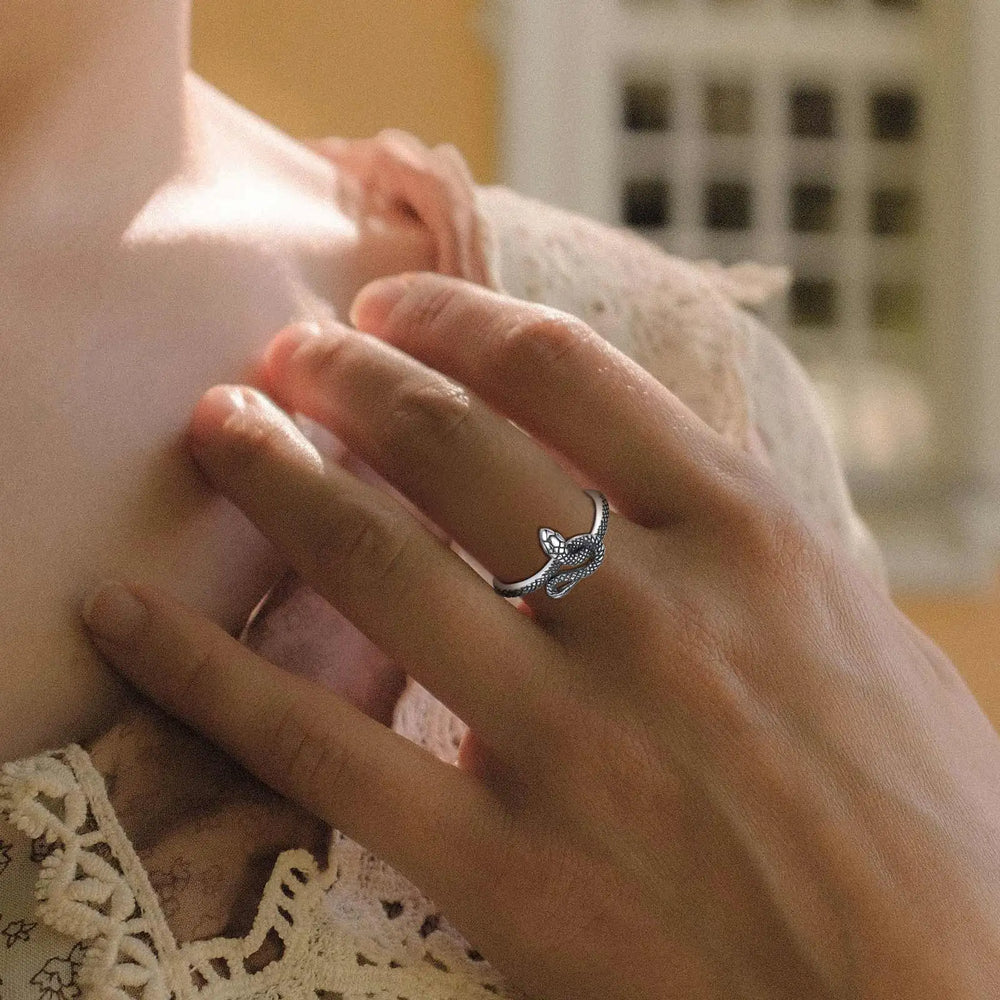 This silver snake ring adds a touch of mystery and elegance, making you the center of attention at any gathering. Its unique design draws compliments and showcases your bold personality.