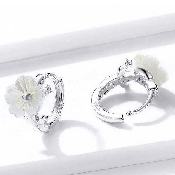 Delicate white shell blooms set in hypoallergenic S925 silver—nature’s elegance for everyday wear.