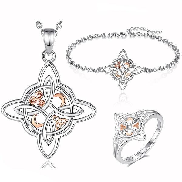 Unleash your inner mystic with this sterling silver set, designed to add a touch of magic to your everyday look. Each piece features a witchcraft knot, symbolizing protection and power, helping you feel confident and unique.